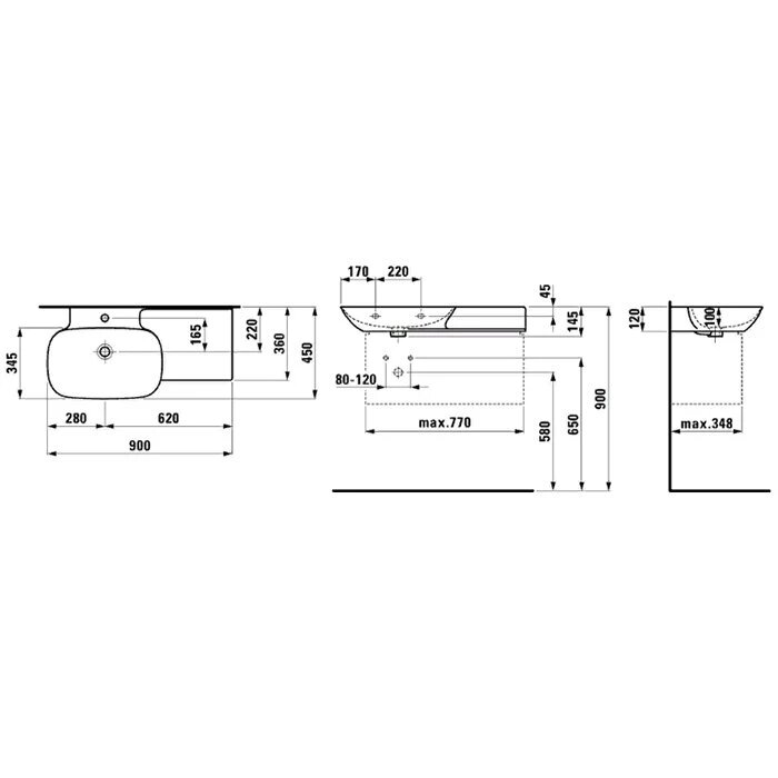 Раковина 90 см с полочкой справа швейцарского производителя Laufen из коллекции Ino. Умывальник с одним отверстием под установку смесителя. Накладная раковина выполнена из SaphirKeramik. Свойства материала SaphirKeramik обусловлены его исключительной твердостью и прочностью. Прочность достигается благодаря добавлению минерала корунда (AI2O3), который встречается в природе в различных видах как компонент сапфира.