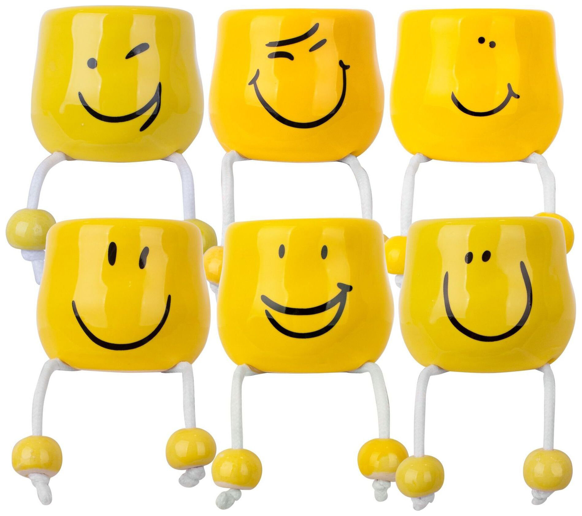 Забавное кашпо в виде смайлика - необычное украшение для пластикового горшка или оригинальная упаковка, если растение предназначено для подарка. Изделие выполнено из прочной керамики и покрыто гладкой глазурью, защищающей его от повреждений.