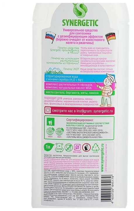 На сегодняшний день товар «Средство для сантехники Synergetic Кислотное Биоразлагаемое 5 л (104500)» можно купить с кешбеком в 1 магазине: Яндекс.Маркет