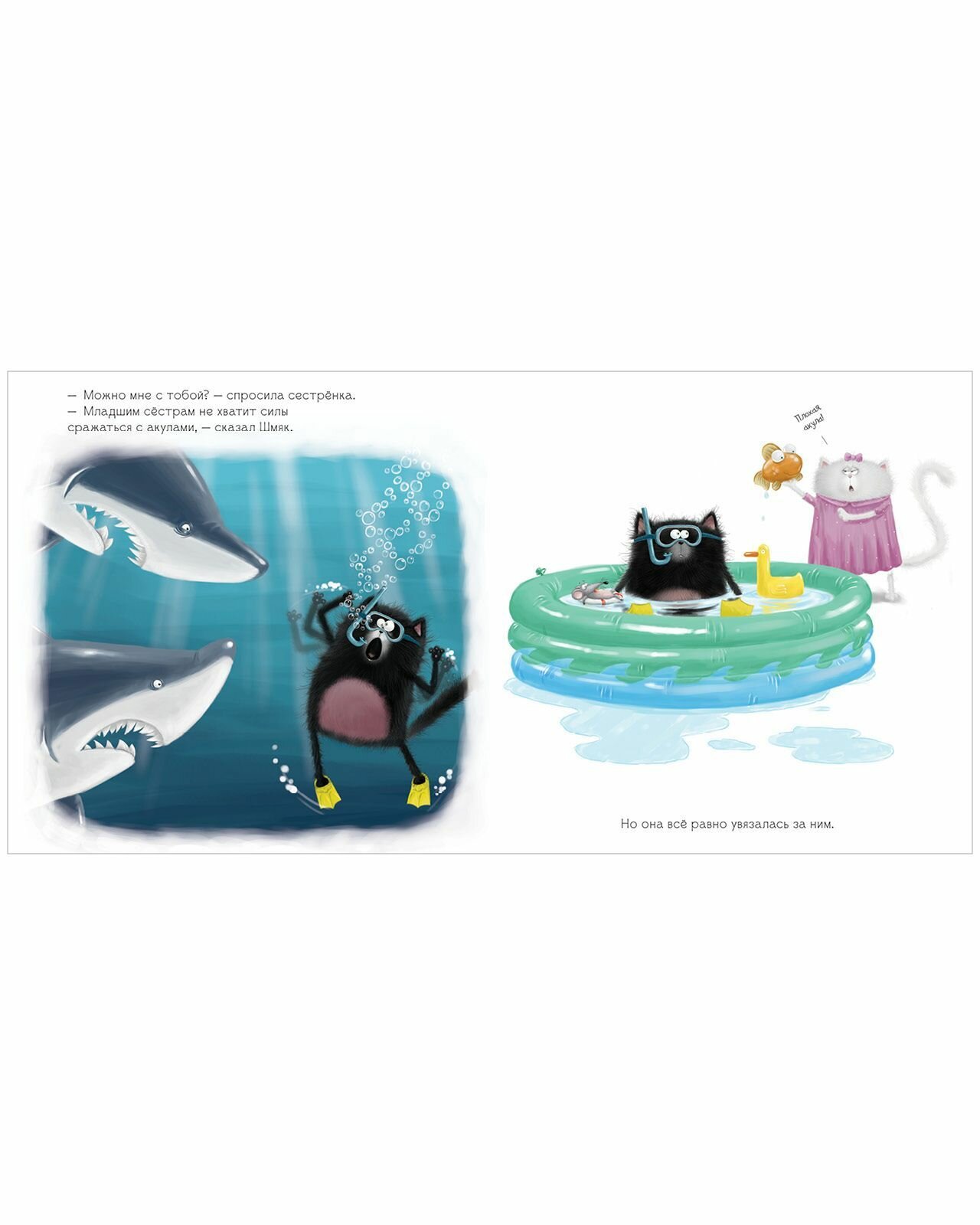 Шмяку дали задание в школе написать сочинение "Как я провел лето" и он сначала расстроился, что не сможет выбрать что-то одно. Начал вспоминать свои приключения и понял, что самым главным было то, что его сестра была рядом. Больше всего история понравится школьникам начальных классов и старшим братьям! Моему сыну 2 года, но любит все истории про Шмяка и эта не исключение : сам вспомнил, как "купался с акулами" и "играл в футбол"
