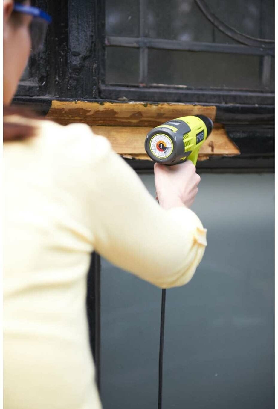Технический фен Ryobi может использоваться с целью прогрева различных поверхностей. Он поддерживает два режима подачи воздуха и два режима нагрева, что подходит для выполнения любых задач. Нагревательный элемент инструмента имеет съемный защитный кожух, облегчающий замену насадок. Мощность в 2000 Вт гарантирует высокую производительность. Фен поставляется в комплекте с двумя насадками.