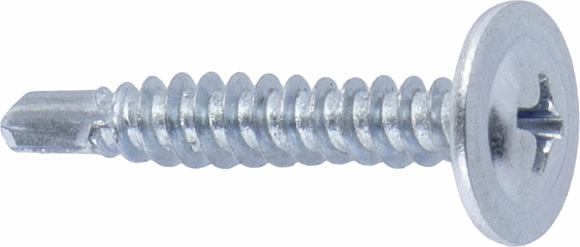 Саморезы по металлу с буром предназначены для крепления металлических листов толщиной до 2мм без предварительного сверления к металлическому основанию. Имеют полусферическую головку с прессшайбой и крестообразным шлицем PH2(Philips N2), резьбу с мелким шагом и наконечник со сверлом. Пресс-шайба плотно прижимает листовой материал к основанию, придавая всему соединению прочность и надежность. Производятся из оцинкованной стали. Саморезы имеют полную резьбу. При монтаже происходит сверление перед вкручиванием, что значительно упрощает монтаж.