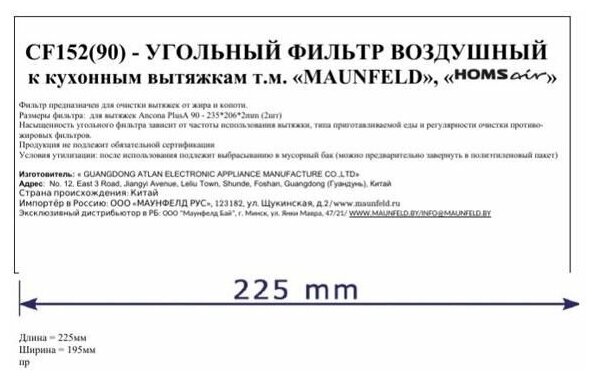 Модель: Угольный фильтр Maunfeld CF 152 черный