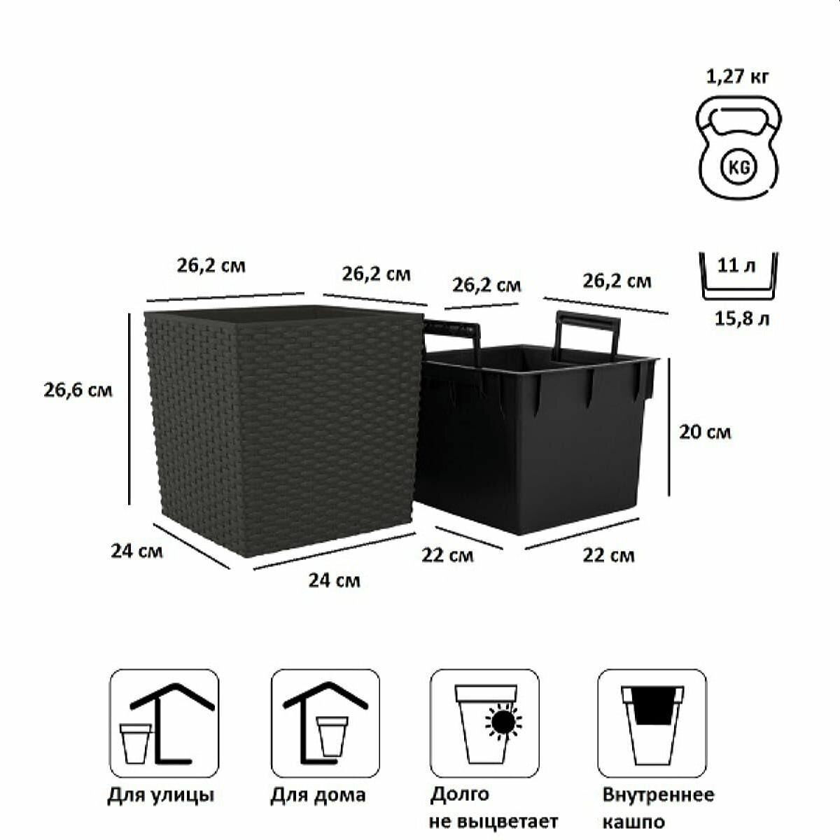 Модель: Кашпо с контейнером Prosperplast квадрат коричневый 26.5 см