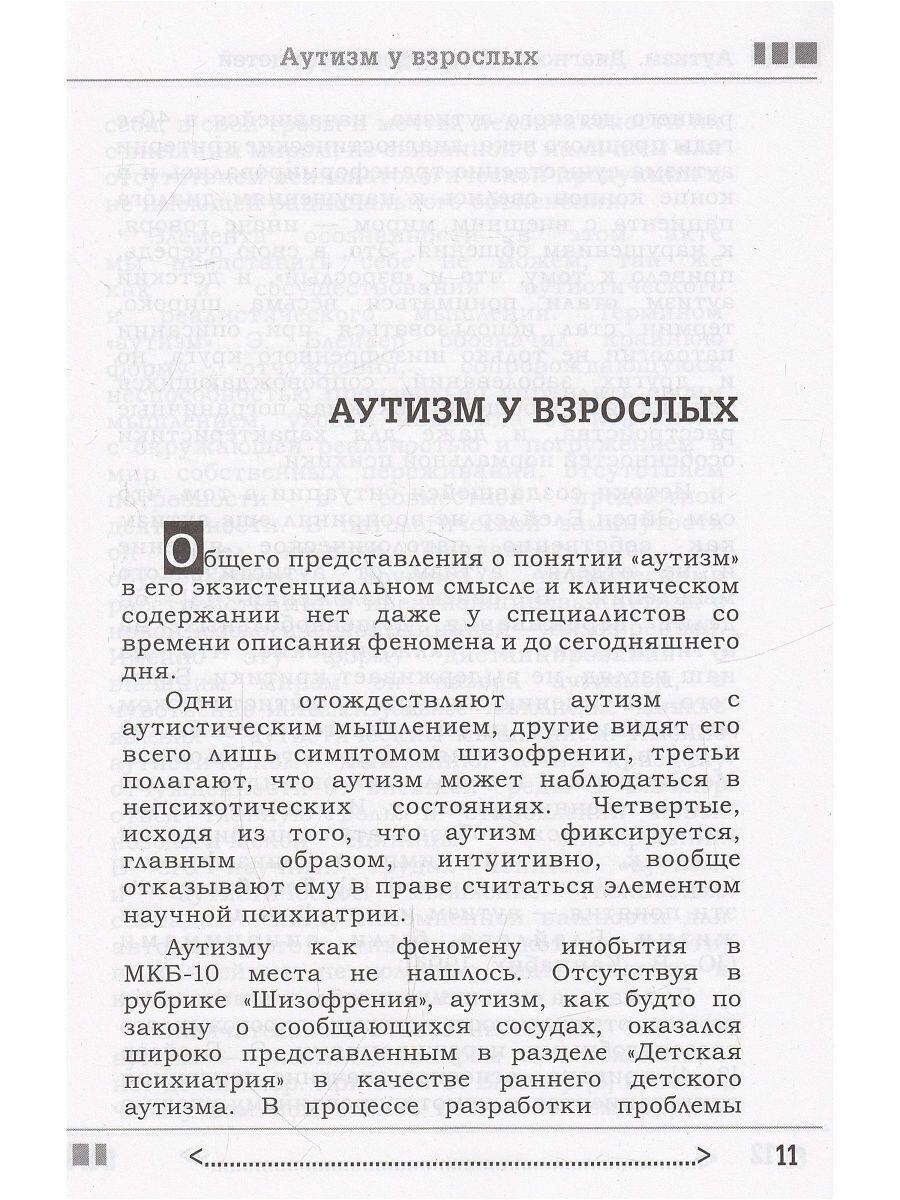.Написанная в свободной стилистике, книга призывает к полемике по самым принципиальным вопросам аутизма. Издание адресовано психиатрам, психологам, педагогам, организаторам психиатрии и родителям.