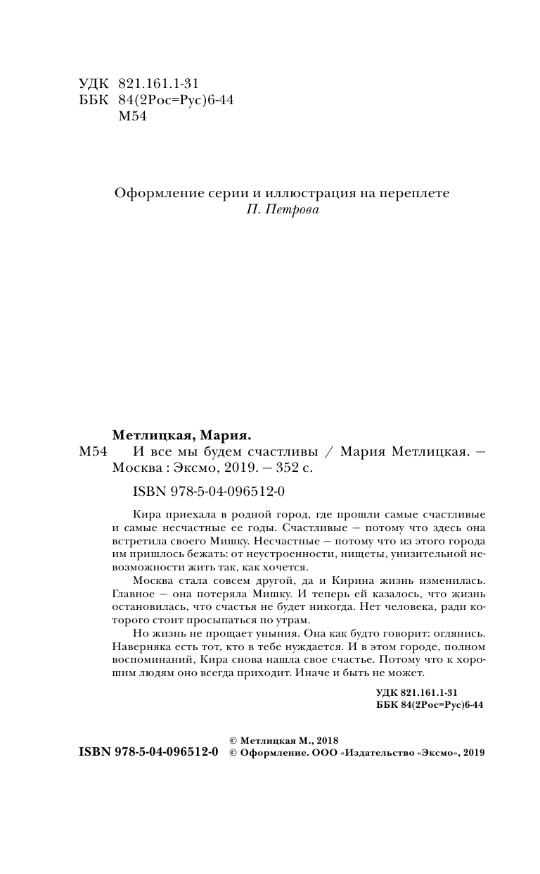 Книга: И все мы будем счастливы (Мария Метлицкая); Эксмо, 2018