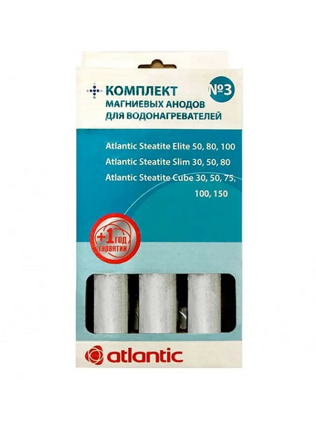 Набор анодов ATLANTIC №3 предназначен для электрических проточно-накопительных водонагревателей Atlantic Steatite Elite(объемом 50, 80, 100 л), Steatite Slim (объемом 30, 50, 80 л), Steatite Cube (объемом 30, 50, 75, 100, 150 л).
