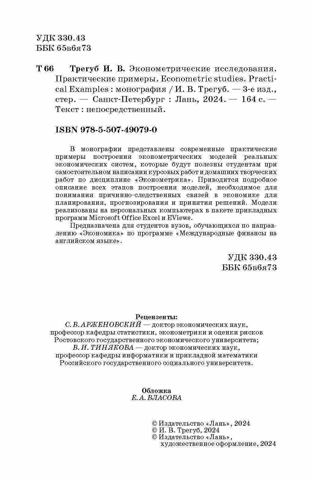 Эконометрические исследования. Практические примеры (Трегуб Илона Владимировна); Лань, 2023