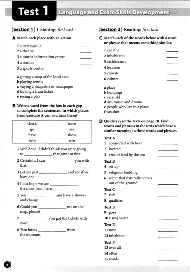 - тренировочные упражнения по каждому разделу экзамена;
