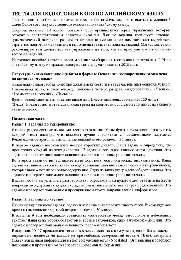 Тесты для подготовки к ОГЭ по английскому языку