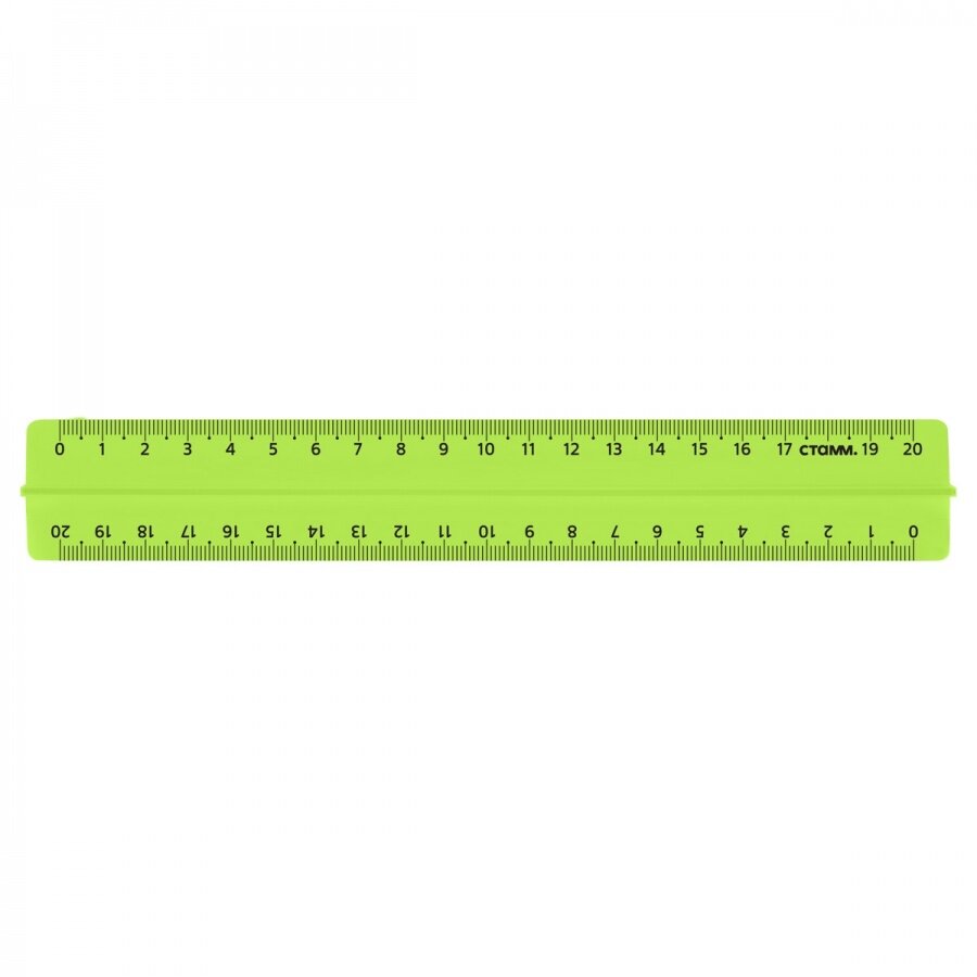 Линейка яркого флуоресцентного цвета с гладкой глянцевой поверхностью. Предназначена для чертежных работ. Имеет безопасные закругленные углы. Изготовлена из сертифицированного полистирола.