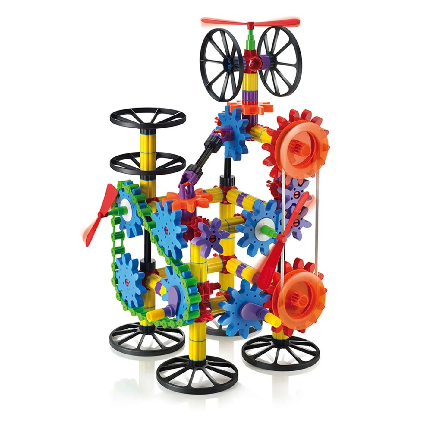 | Состав набора | 8 элементов основы черного цвета, 2 больших шестеренки, 7 средних шестеренок, 5 малых шестеренок, 70 прямых элементов колонн, 6 универсальных шарниров, 80 соединений, 1 сборная цепь из 46 элементов, 18 красных соединений, 4 поворотных соединения, 2 ролика натяжения, 3 колеса, 2 пропеллера, 1 цветной буклет |