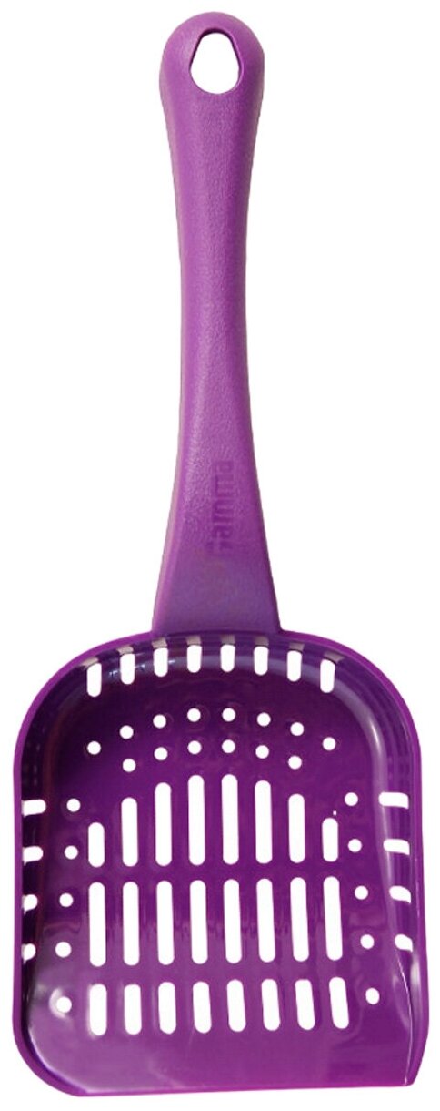 Удобный совок для очистки кошачьего туалета и досыпки наполнителя. Изготовлен из прочной нетоксичной пластмассы яркой расцветки. Рабочая поверхность с мелкой ячейкой отлично подходит для мелкогранулированного наполнителя. После использования изделие легко чистится под водой при помощи моющих бытовых средств. Размеры изделия: 260х100х45мм.