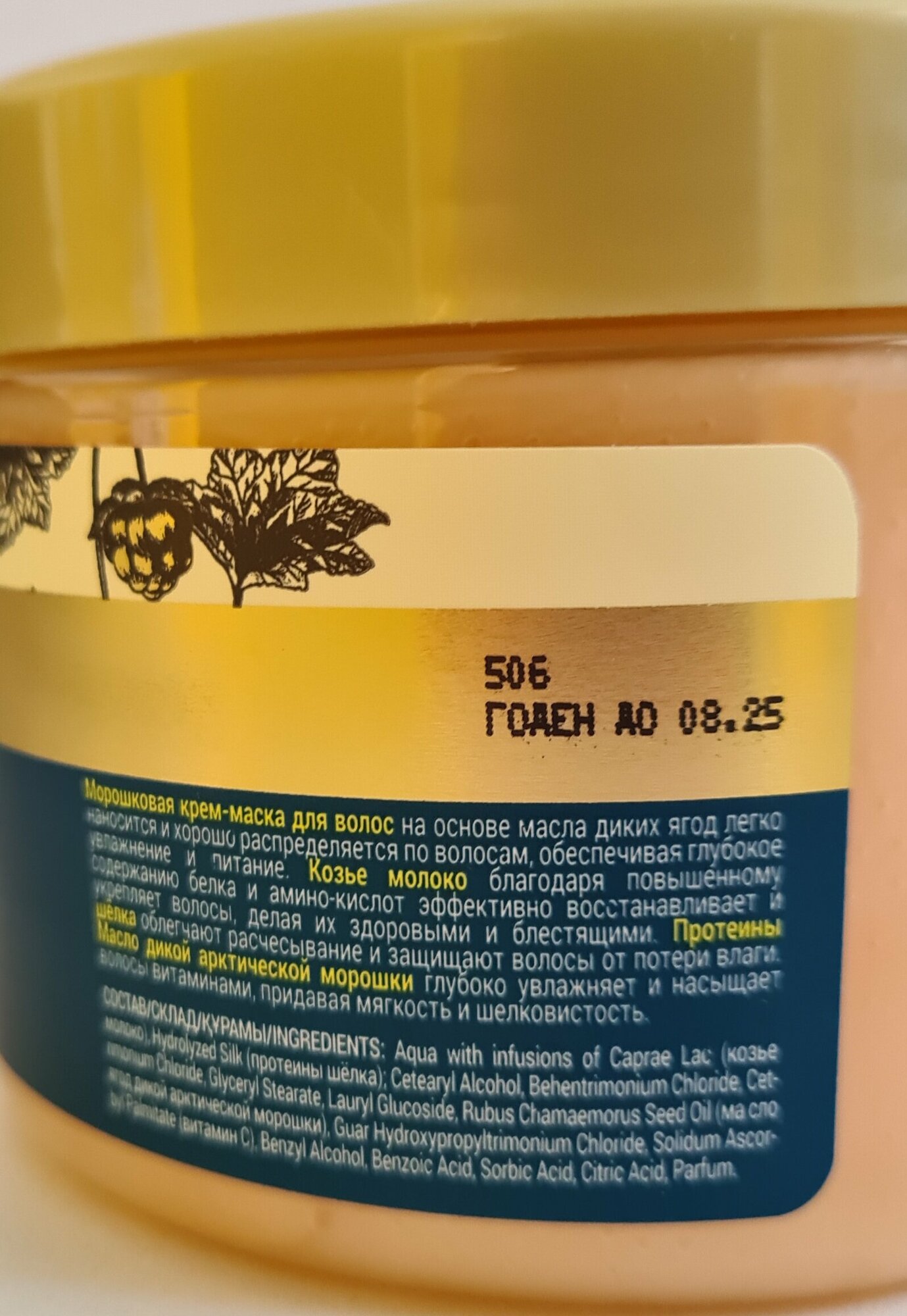 В качестве основы для этой маски применяется масло ягод дикой арктической морошки и другие активные компоненты, которые позволяют обеспечить глубокое увлажнение и насыщение волос питательными веществами. Средство легко наносится и распределяется по поверхности волос. Благодаря козьему молоку, обладающему повешенным содержание белка и аминокислот, волосы эффективно восстанавливаются и укрепляются, что делает их на вид здоровыми и блестящими, тогда как протеины шелка защищают пряди от потери влаги и облегчают процедуру расчесывания. Присутствие в составе масла ягод дикой арктической морошки способствует глубокому насыщению волос питательными элементами и увлажнению, наделяя их при этом мягкостью и шелковистостью.