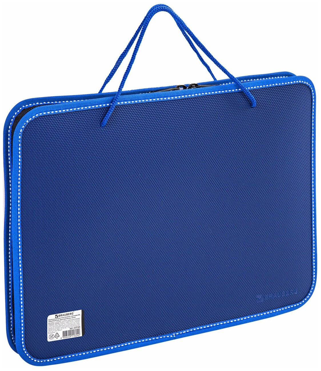 Папка на молнии А4 Brauberg пласт. с ручк. 350*270*45 мм фактура бисер син. 225163
