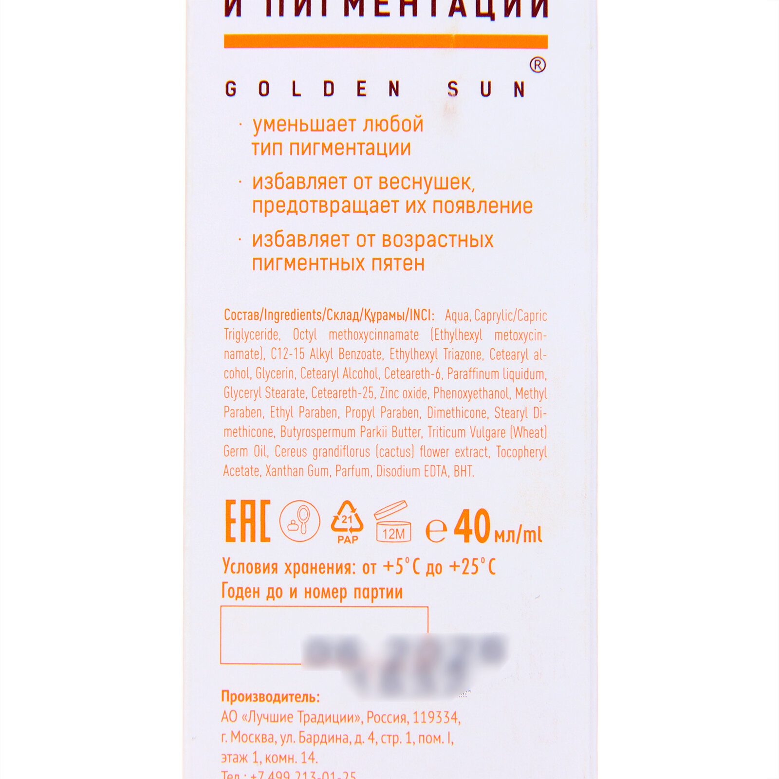 Крем Golden Sun отбеливающий SPF-45+ UV (A+B) 40 мл (10135)