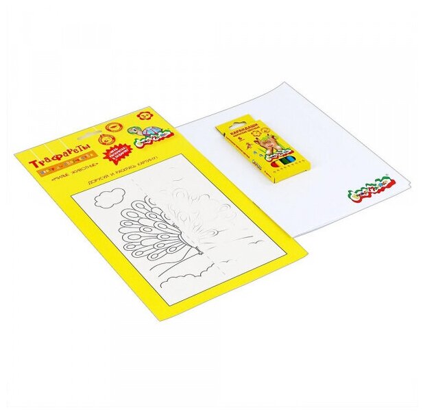 | Состав набора | трафарет - 4 шт.; блокнот - 1 шт.; карандаши цветные - 6 шт.; упаковка |