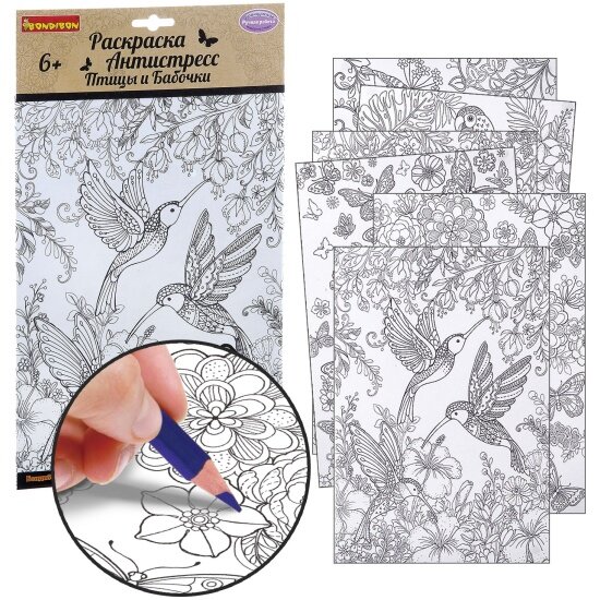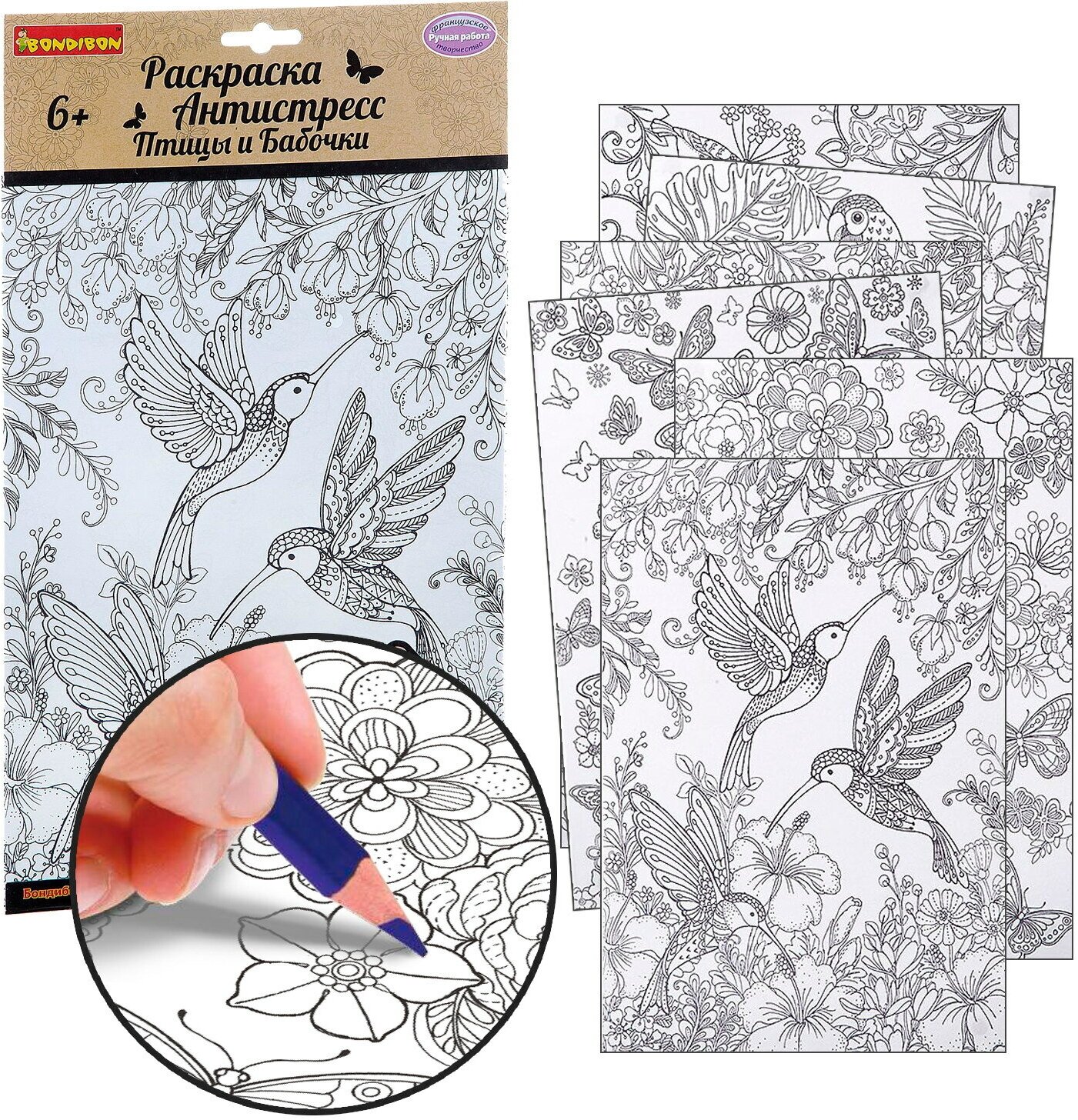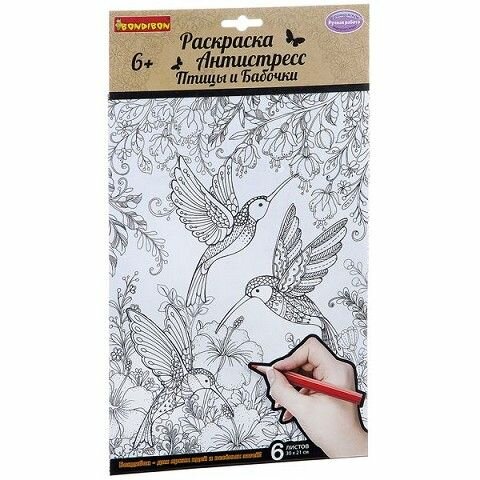 Набор раскрасок-антистресс Bondibon Птицы и Бабочки 6 листов 30х21 см (ВВ1975)