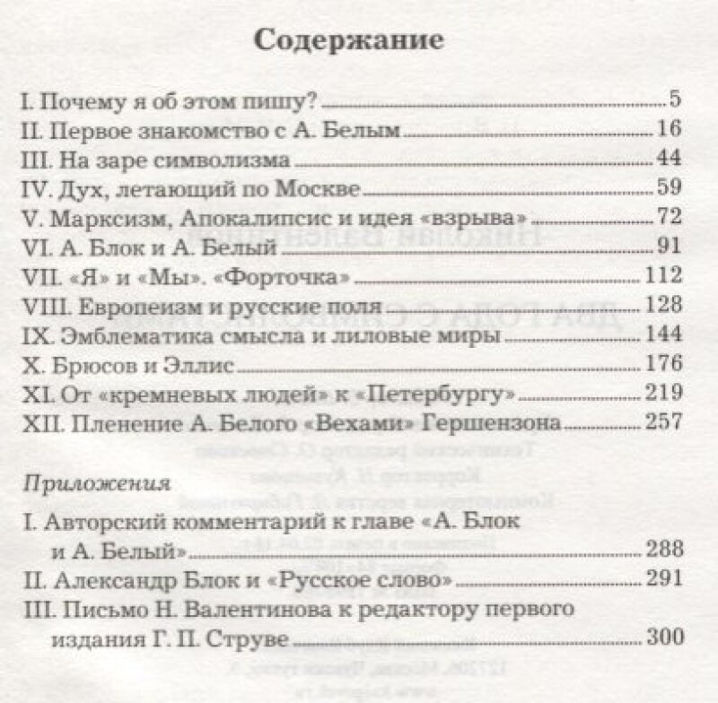 Поставленную цель — передать утраченную атмосферу того времени и те детали, которые, кроме него, уже мало кто помнил, Валентинов смог. Встречи с Белым и Эллисом, беседы и споры с ними переданы со всеми запомнившимися автору подробностями. Этих подробностей иногда даже с избытком, поскольку речь у них шла о разных высоких материях, так что написанная легко и нескучно, местами эта книга читается тяжеловато. В каких газетах сотрудничал и не сотрудничал Андрей Белый, цитаты из последнего на несколько страниц — это представляет интерес скорее для литературоведа. Остальное — дает необычный снимок 1905-10 гг. (и более позднего времени, скажем, встреча с Брюсовым в 1920 г.).