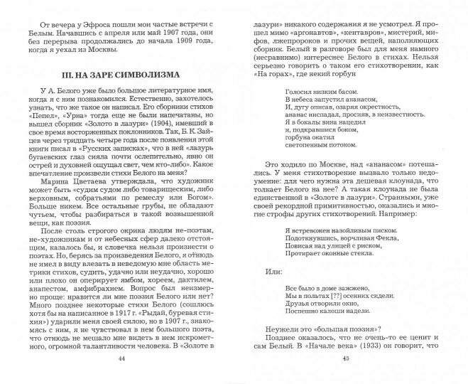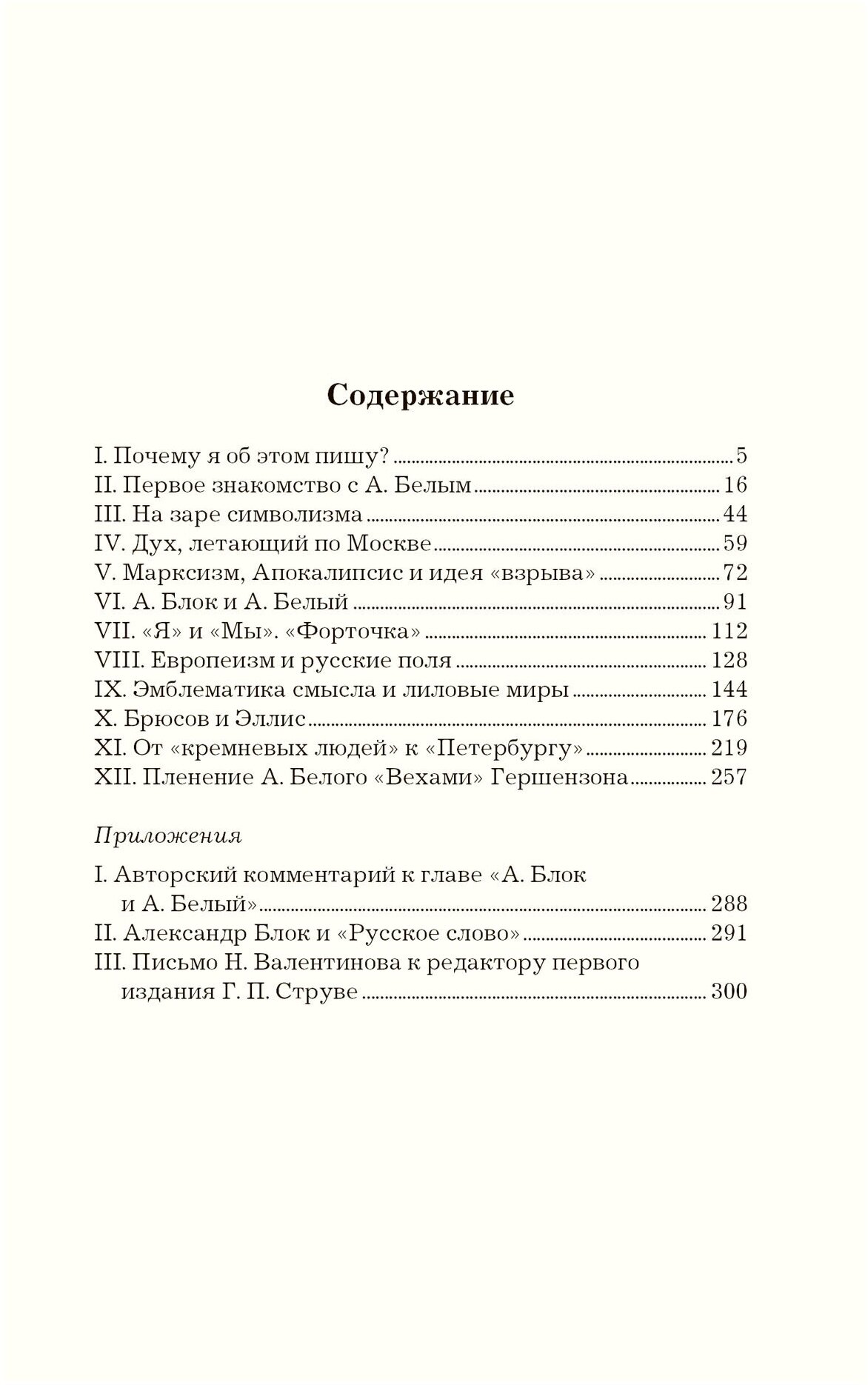 У этой любопытной книги два героя — один коллективный (Белый, Блок, Эллис, Брюсов), второй более индивидуальный, это сам автор, хотя разнесенный во времени (между описываемыми событиями и воспоминаниями о них) почти полувеком.