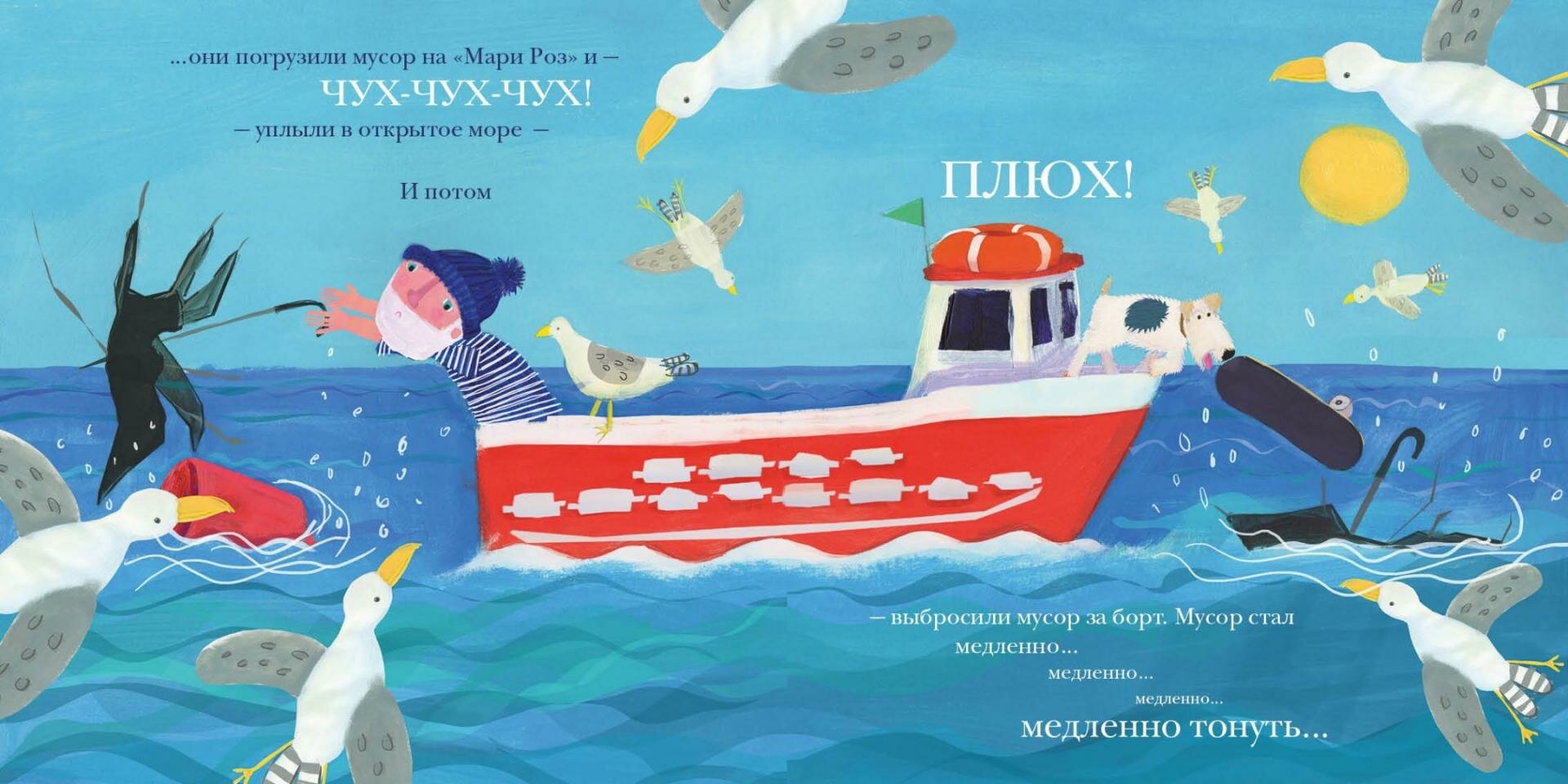 Мне очень понравилась идея начать разговор о загрязнении мирового океана с этой книги. Вообще разговор об экологии. Милые картинки, совсем несложный текст, русалки и немудрящие события, счастливый финал – все эти детали складываются не просто в приятную картинку, но и во вполне достойную сказку. Капитан Крэнки, можно сказать, тоже эволюционирует от начала до финала. Словом, хорошая книга, можно сказать, с сюрпризом. От книжек с картинками не ждешь особой глубины. Тем приятнее было читать эту. Очень понравились рисунки – они достаточно примитивные и яркие, чтобы привлечь внимание малыша, но и довольно симпатичные, чтобы увлечь ребенка постарше и стимулировать его к обсуждению.