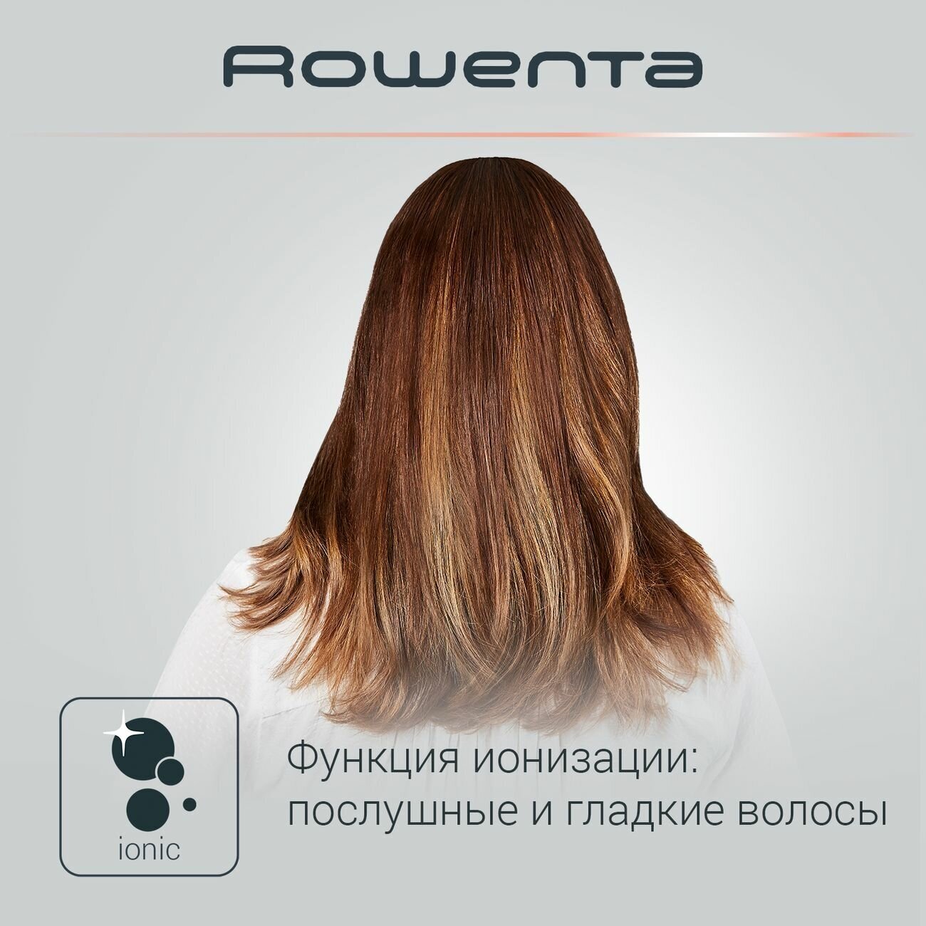 Фен Rowenta отлично подходит для использования в путешествиях. Со сложенной ручкой он поместится даже в небольшую сумочку. Длинный провод поможет выбрать наиболее удобное место укладки в квартире или гостиничном номере, а небольшая петелька позволит подвесить его рядом с зеркалом. Система ионизации Устройство генерирует поток частиц с отрицательным зарядом. Попадая в волосы, они опускают микроскопические чешуйки, надёжно удерживая влагу. Благодаря этому локоны сохраняют свой естественный насыщенный цвет и здоровый блеск. Ионизация также помогает избавиться от статического заряда, сделав волосы «послушными» и облегчив укладку. Для любых задач Фен предлагает два скоростных режима, подходящих как для неспешного стайлинга, так и для быстрой укладки. Три уровня температуры позволяют выбирать оптимальные настройки для каждого типа волос. Функция подачи холодного воздуха поможет мгновенно закрепить полученную причёску. Удобство И практичность Съёмная защитная решётка упрощает обслуживание фена. Своевременная очистка от попавших внутрь волос предотвращает появление посторонних запахов и продлевает срок службы нагревателя.