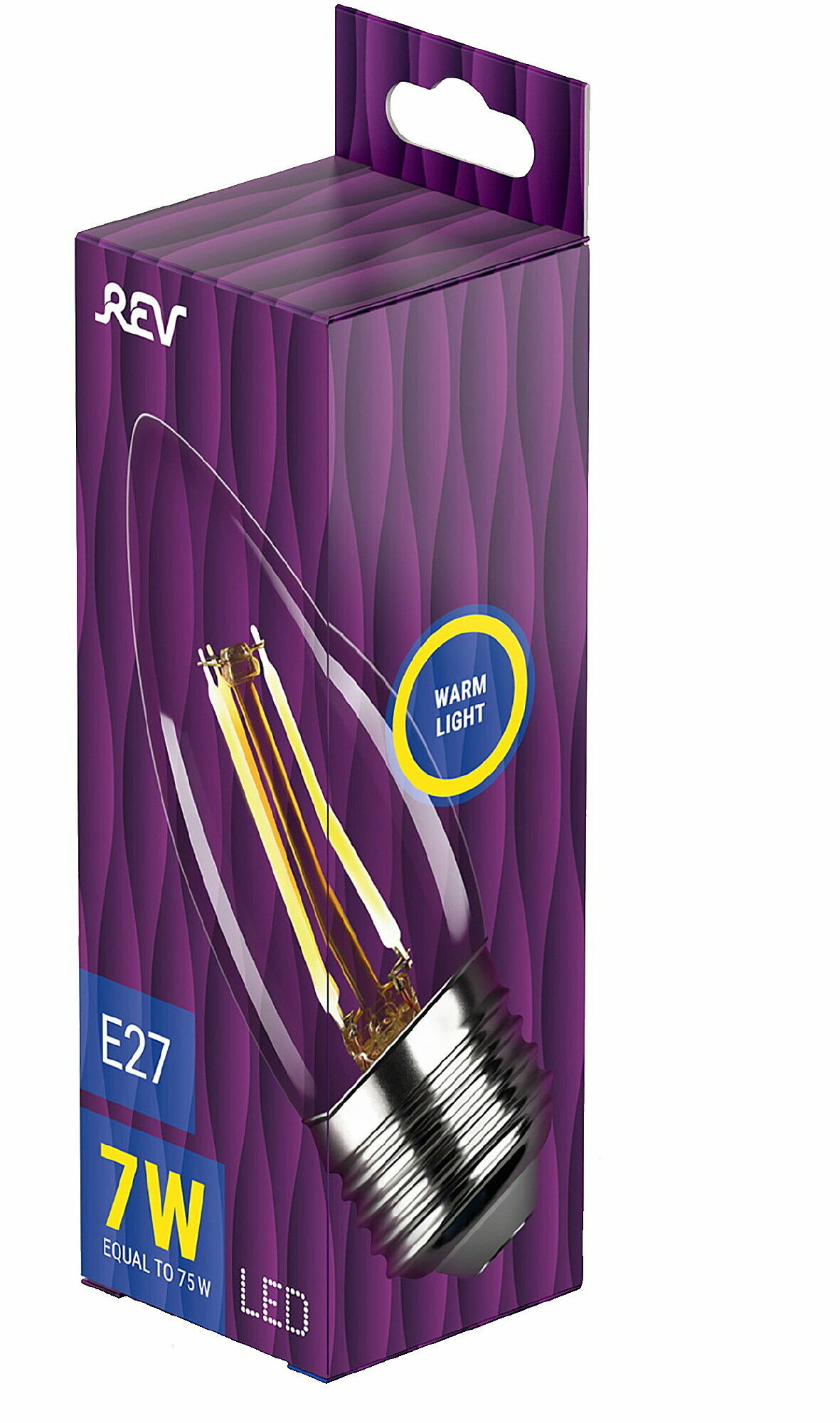 Энергосберегающая светодиодная лампа Filament в форме свечи теплого свечения. Светодиодная филаментная лампа идеально подойдёт для гостиной и спальни, будет прекрасно смотреться в любом светильнике, подчеркнет стиль и тонкий вкус хозяев дома. Современный эргономичный дизайн, экономично, абсолютно безопасно, не содержит ртути, имеет ровный теплый свет без мерцания, который безопасен для глаз и создает неповторимую уютную атмосферу. Потребляемая мощность 7Вт. Интенсивность свечения аналогична обычной лампе накаливания мощностью 60Вт. Цоколь Е27. Срок службы 30000час. Световой поток 560Лм, Цветовая температура 2700К.