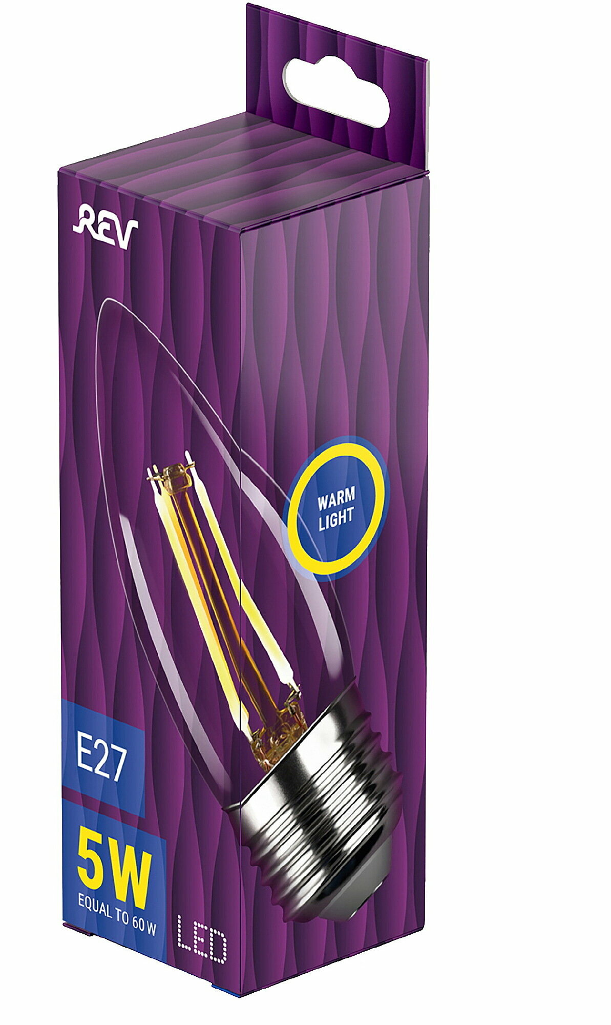 Энергосберегающая светодиодная лампа Filament в форме свечи теплого свечения. Светодиодная филаментная лампа идеально подойдёт для гостиной и спальни, будет прекрасно смотреться в любом светильнике, подчеркнет стиль и тонкий вкус хозяев дома. Современный эргономичный дизайн, экономично, абсолютно безопасно, не содержит ртути, имеет ровный теплый свет без мерцания, который безопасен для глаз и создает неповторимую уютную атмосферу. Потребляемая мощность 5Вт. Цоколь Е27. Срок службы 30000час. Цветовая температура 2700К.