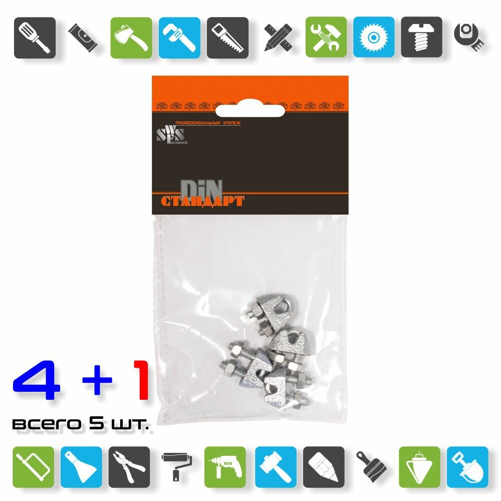 Зажим для канатов SWFS DIN741 М5 /4шт/ пакетик тов- применяется для крепления канатов между собой.Для защиты от коррозии нанесено цинковое покрытие.
