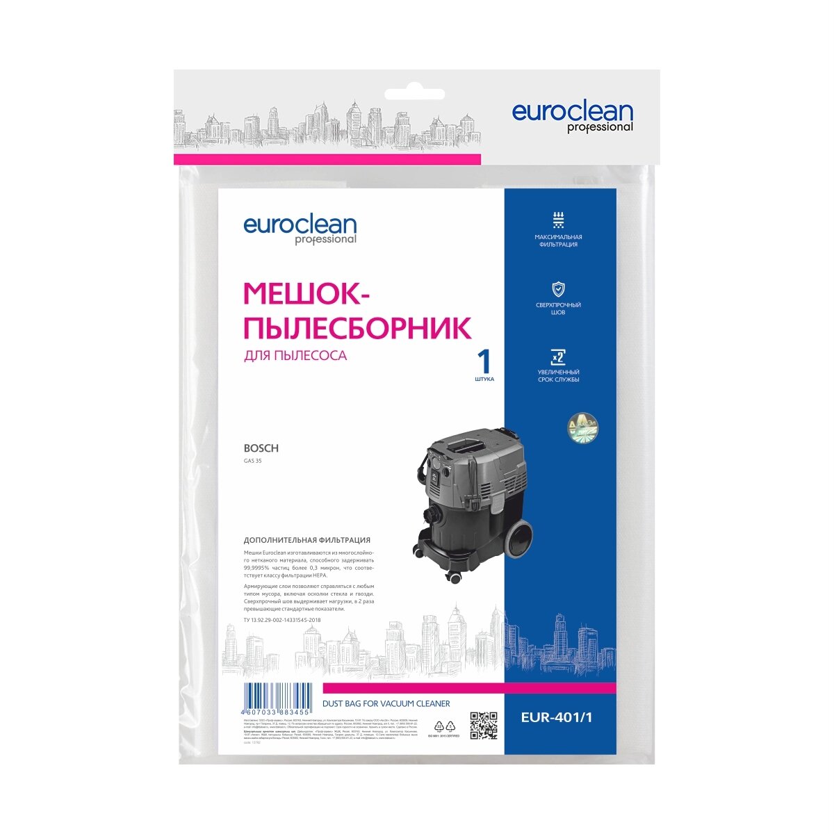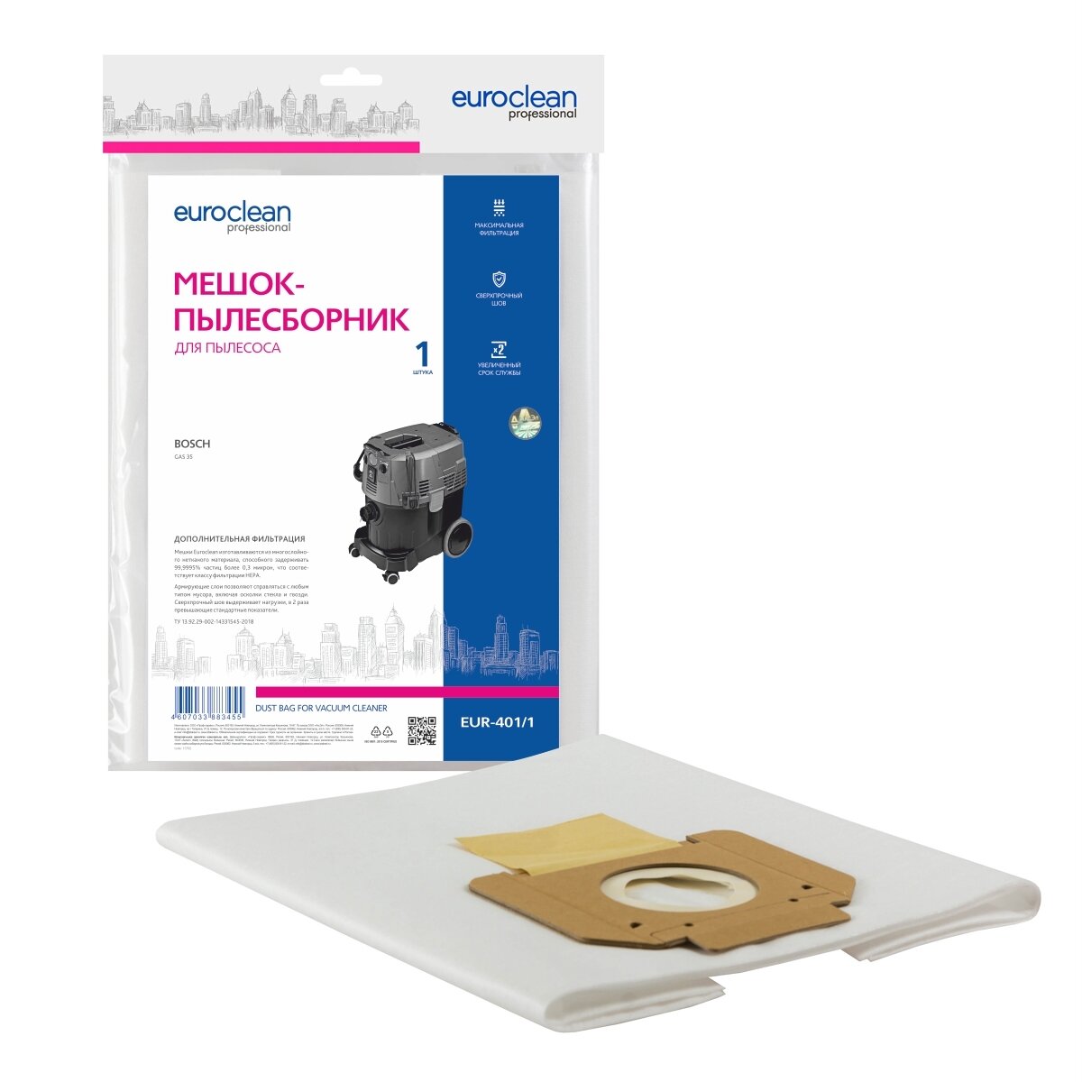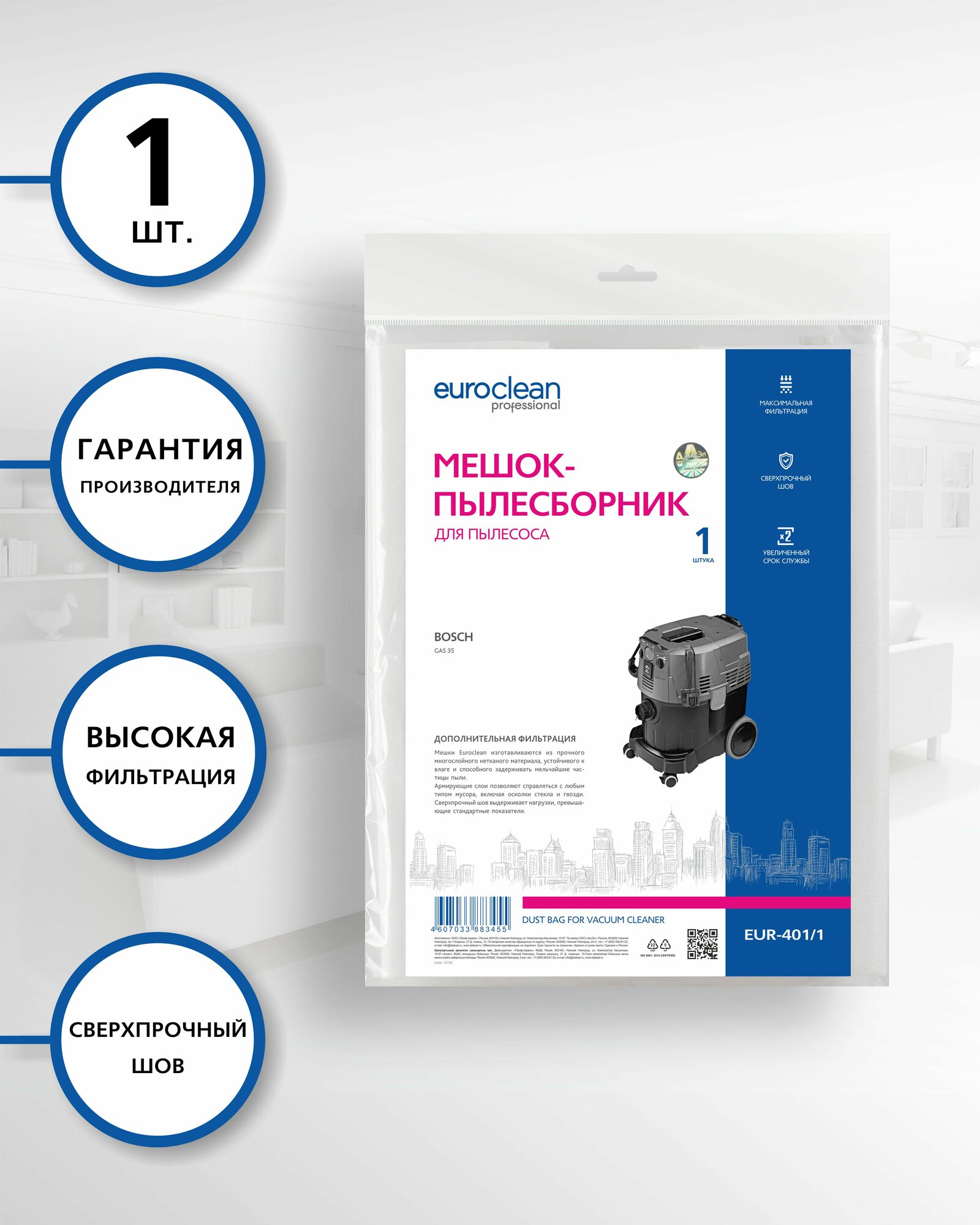 Мешок-пылесборник синтетический EURO Clean EUR-401 подходит для промышленных пылесосов BOSCH GAS 35. Они вмещают до 35 литров мусора, удобны в использовании. Данные мешки подходят для одноразового использования. За счет особой структуры волокон нетканых материалов мощность всасывания не изменяется по мере заполнения. Подходит к следующим маркам и моделям пылесосов: * BOSCH GAS 35 M AFC Professional; GAS 35 L AFC Professional; GAS 35 L SFC+ Professional.