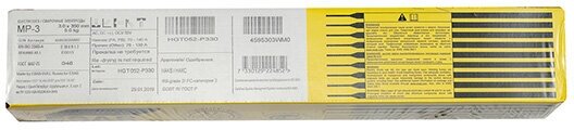 **Электрод Esab МР-3** предназначен для ручной дуговой сварки стальных деталей. Формирует ровный и прочный шов, защищенный от попадания внутрь окисляющих элементов. Не образует стыков, шероховатостей и переходных зон. Характеризуется минимальным разбрызгиванием расплавленного материала.