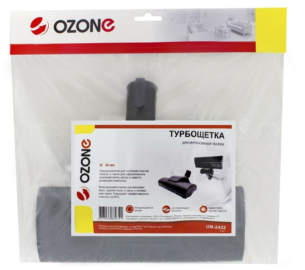 OZONE Турбо щетка для интенсивной уборки Максимальная эфективность уборки сложных загрязнений и шерсти домашних животных. Подходит для всех типов пылесосов с диаметром удлинительных трубок 32 мм.