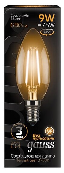 Лампа светодиодная свеча Gauss 103801109 E14 9W 2700K