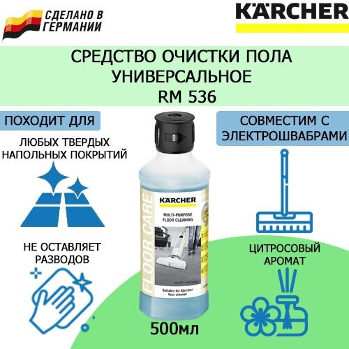 Для любых твердых напольных покрытий: Универсальное средство для уборки полов RM 536 для тщательной уборки. Удаляет следы хождения и при этом не оставляет полос и пятен. С влагозащитным компонентом, препятствующим промоканию и разбуханию, и запахом лимона.