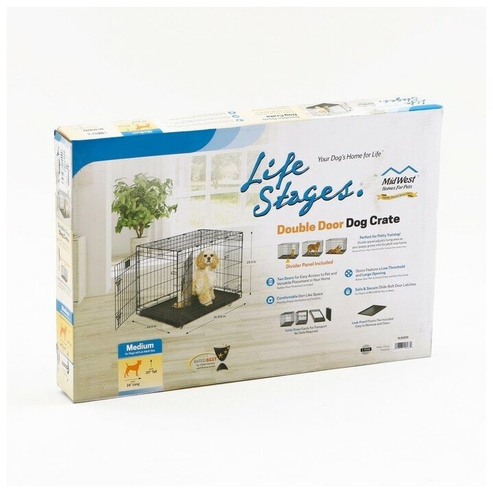 Клетка для домашних животных Life Stages с двумя дверьми. Признана лучшей Ветеринарными врачами и Бихевиористами. Устойчивая, крепкая клетка выполнена из качественного металла, обработана долговечным черным покрытием Electro-Coat, обеспечивает безопасность животного и хозяина. Двери расположены на смежных боковых сторонах. Удобный, крепкий двойной замок-задвижка позволяет закрыть клетку как снаружи, так и изнутри. В комплект включены: разделяющая панель, пластиковый поддон и специальные пластиковые ручки для удобной транспортировки клетки в сложенном виде. Закругленная угловая защита клетки обеспечивает безопасность питомцам и людям и не повреждает поверхность, на которой размещается. Разделяющая панель позволяет создавать универсальные отсеки. Поддон из композитного пластика легко моется.Клетка легко устанавливается и складывается без использования инструментов. В сложенном виде занимает мало места. Размер 76х53х61h см. Вес - 10,6 кг (11,5 кг вес с упаковкой). Цвет - черный.