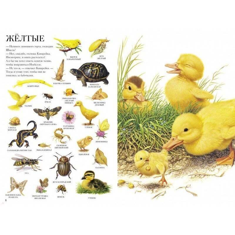 В нашем оригинальном красочном издании, как в сказочном музее, животные представлены по цветам. Каждый разворот - свой цвет.