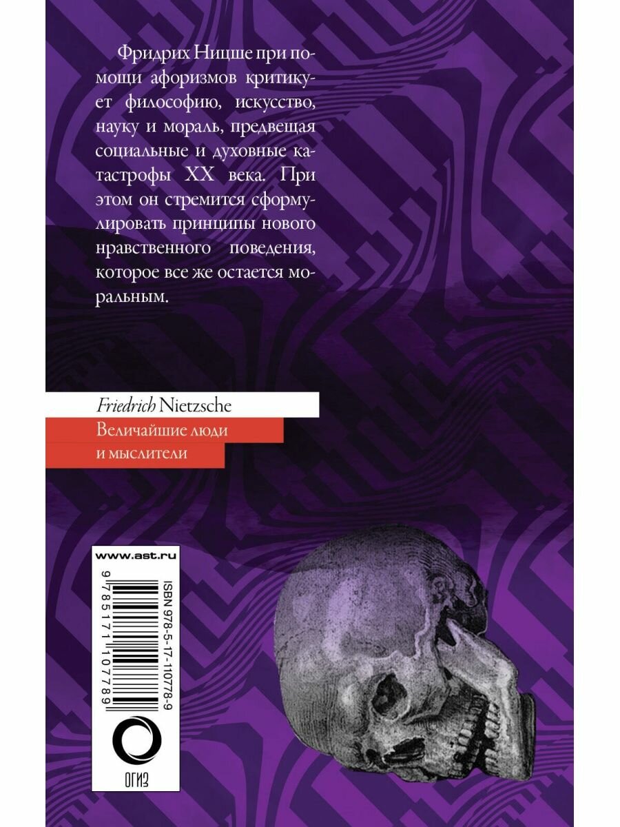 Хорошее издание. Не хватает примечаний к цитатам, приведённым на французском языке. Tout le monde ne parle pas français. После прочтения интересно примечать последующее преломление идей ницшеанства в различных идеологических, философских и псевдомедицинских течениях начала-средины XX века и нашего времени.