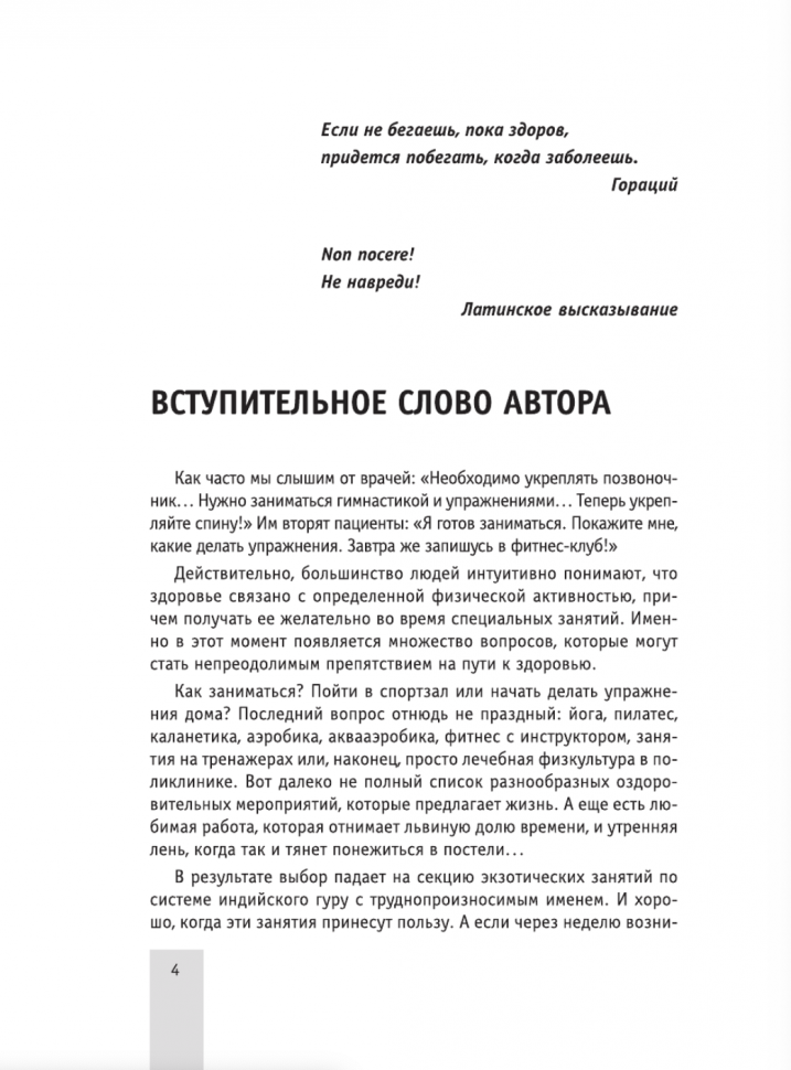 В книге нейрохирурга, кандидата медицинских наук Игоря Анатольевича Борщенко читатель найдет уникальную методику изометрических мышечных тренировок по укреплению глубоких мышц спины и формированию осанки. Особенность этой гимнастики в том, что мышцы напрягаются в специальных эргономичных позициях, практически без движений или с использованием специальных движений малой амплитуды, что исключает перегрузку суставов и позвонков. Не случайно систему мышечных тренировок "Умный позвоночник" Игоря Борщенко называют "неподвижной" (статической) гимнастикой.