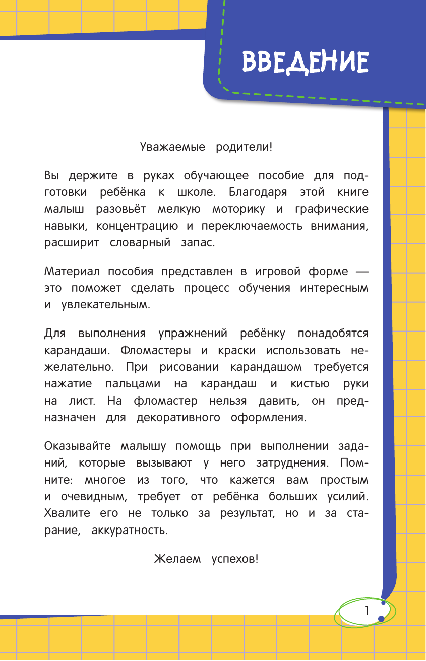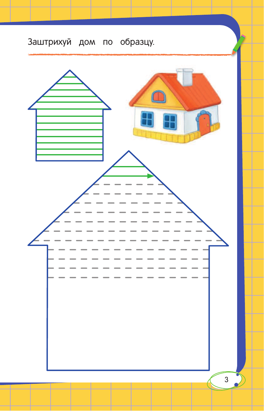 Очень нравятся книги этой серии и по качеству и по содержанию. Довольно плотная обложка,яркие иллюстрации и линии,крупный шрифт. Задания следующего типа: горизонтальные, вертикальные и наклонные линии, зигзаги, волнистые линии, петли, спирали, штриховка, круги и овалы,рисование по клеткам. Рекомендую