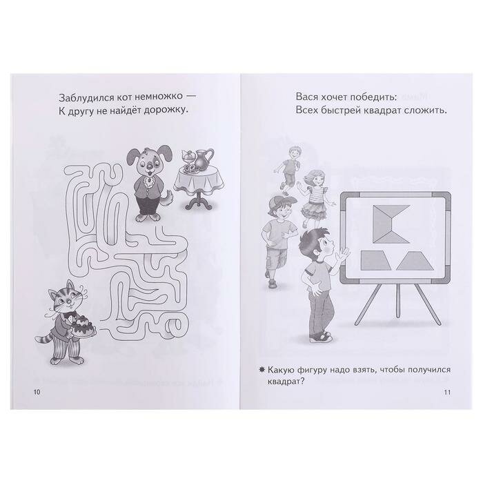 Хорошее пособие. Моему сынишке нравится заниматься. Конечно мы все делаем вместе, но задания хорошие, интересные. Различные лабиринты, найди отличия, найди фигуры, сосчитай и так далее. Конечно картинки и задания черно-белые, но это их совсем не портит, при желании можно после выполнения задания раскрасить картинки. Небольшой минус пособия тонкие листы и обложка, но это не критично.