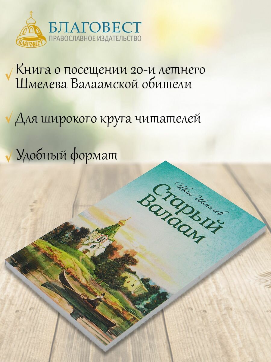 Книга известного русского писателя Ивана Шмелева «Старый Валаам» рассказывает о впечатлениях автора от посещения им известной древней обители - Валаамского монастыря, когда он был студентом, и которая дала ему твердую опору в жизни - в православной вере.