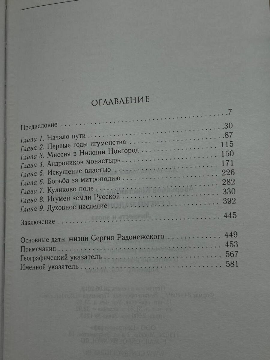 Монография доктора исторических наук К.А. Аверьянова посвящена жизни святого Сергия Радонежского - одной из самых заметных фигур отечественной средневековой истории. Пожалуй, ни об одном из русских святых не написано так много, как об основателе Троице-Сергиевой лавры. Тем не менее уже при первом знакомстве с этой литературой обнаруживается странная и удивительная картина: на первый взгляд о жизни Сергия Радонежского мы знаем практически все - и в то же время почти ничего, даже точных дат жизни. XIV век в истории Руси крайне сложен для историка прежде всего из-за чрезвычайной скудости источников. Разрозненные фрагменты раннего летописания в составе более поздних летописных сводов, считаное количество актов, несколько литературных памятников - вот, в сущности, и все, чем располагает исследователь этого времени. Вместе с тем существует целый пласт источников, который ждет своего исследователя. Речь идет о житиях древнерусских святых. Главная трудность заключается в том, чтобы уметь разглядеть в них черты реальной исторической действительности того времени, увидеть конкретные исторические факты. Благодаря тщательному анализу и сопоставлению различных источников автору впервые удалось воссоздать полную биографию самого известного русского святого.