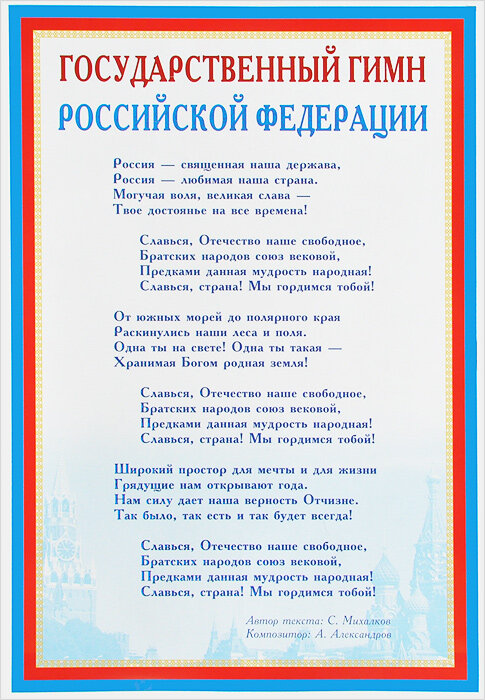 Наглядное пособие предназначено для ознакомления учащихся начальной школы с Государственным гимном Российской Федерации.