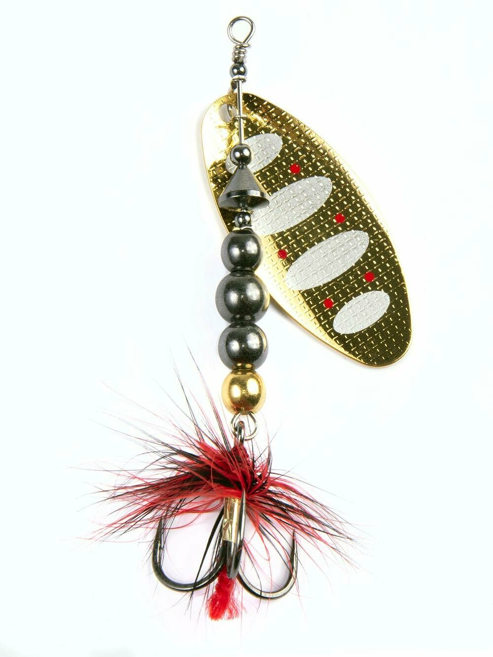 Shelt Blade – серия вращающихся блесен Lucky John с формой лепестка " long" В этих приманках используются современные конструктивные решения, которые обеспечивают надежную и стабильную игру блесен, и делают их очень привлекательными для любой хищной рыбы. Главный элемент блесен – вращающийся лепесток. Он очень легок, сделан из латуни и обладает хорошими динамическими показателями при вращении в воде, что позволяет делать проводку приманки на минимальной скорости. Лепесток " заводится" сразу, как только блесна начинает движение. Лепестки окрашены с двух сторон. С какой бы стороны хищная рыба не смотрела на приманку, ее расцветка остается одинаковой и привлекательной, что повышает интерес к блесне и, в итоге, приводит к результативной атаке. Немаловажная деталь – сердечник приманок, от которого зависит вес и дальнобойность приманки, а также ее устойчивость в воде. На всех тройниках связана яркая мушка, основное предназначение которой – снять последние сомнения у приготовившейся к атаке хищной рыбы.Размер: 04.Вес: 16 г.Расцветка: 002.