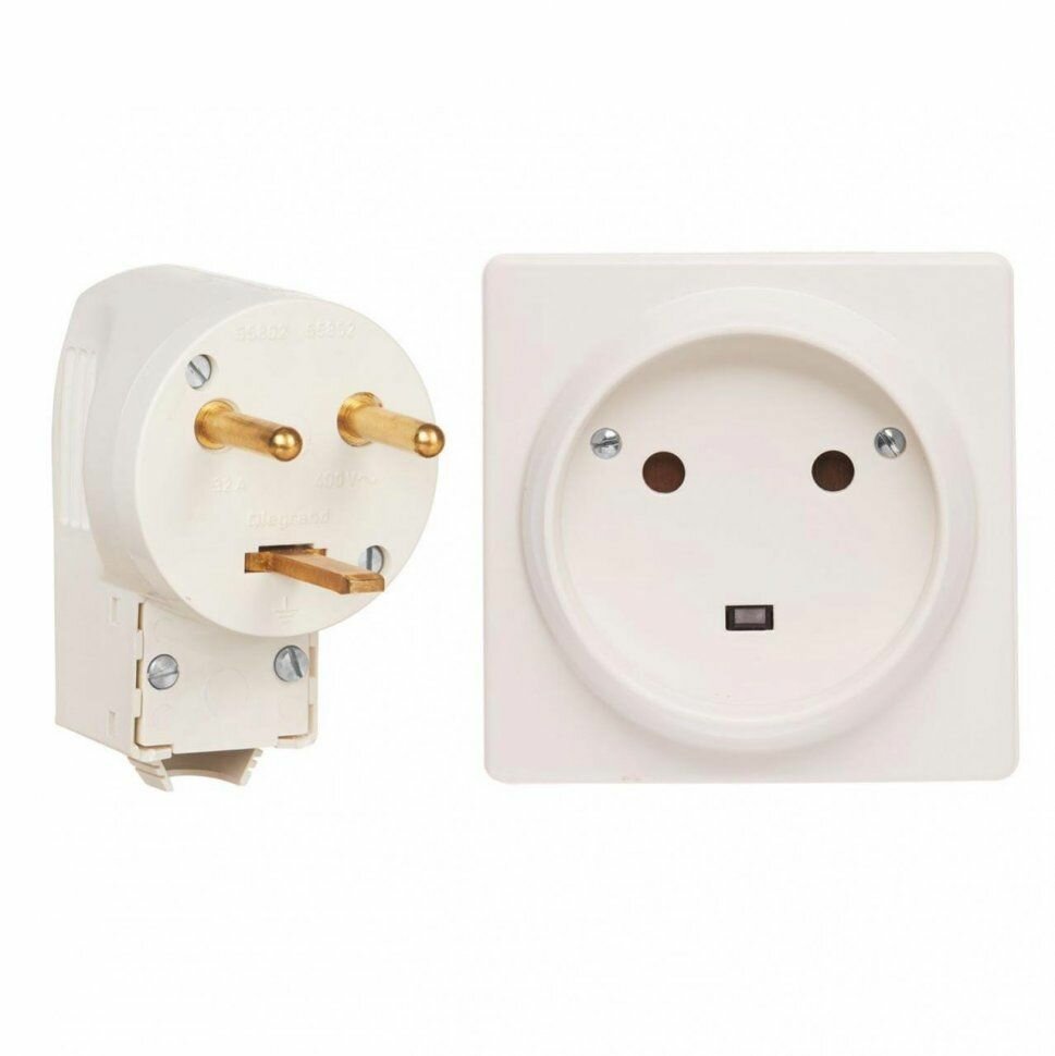 Модель: Силовая розетка и вилка для плиты Legrand Quteo с заземлением белые