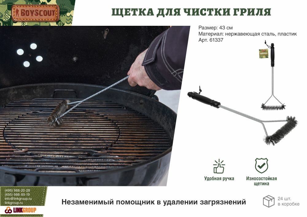 - Щетка для чистки гриля 43см (BoyScout) обзор 61337 производитель ЛинкГрупп ПТК (Россия)