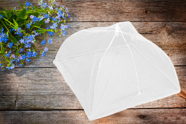 Благодаря своей конструкции и материалу, колпак может использоваться с тарелками любого размера и на открытом воздухе, так как колпаку не страшны порывы ветра. Готовя варенье, компоты, джемы и другие сладости на даче, можно эффективно решить проблему попадания насекомых в готовое блюдо – просто накрыть его колпаком-сеткой.