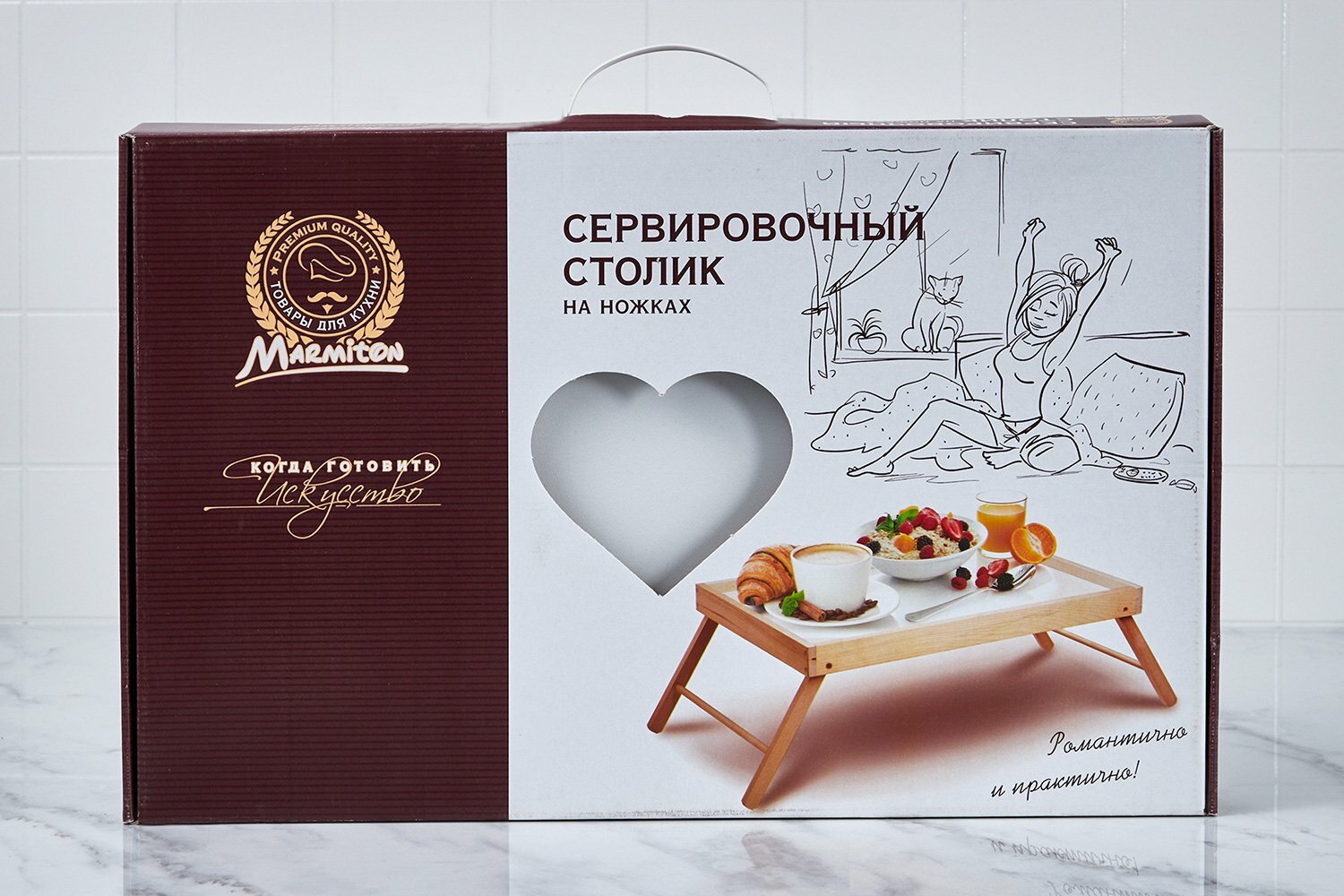 Столик Marmiton предназначен для сервировки и подачи блюд. Изделие изготовлено из натурального материала - древесины березы, столешница - из фанеры. Завтрак в постель - от этого выражения веет роскошью и негой. Чтобы сделать маленькое чудо, вам потребуется сервировочный столик Marmiton. Предназначенный не только для завтрака в постель, такой столик может обитать и за пределами спальни, заменяя собой подставку для ноутбука, классический поднос и даже стол для рисования и подставку для книг. Благодаря своей универсальности складной столик может сопровождать вас на загородной прогулке или в поездке. Такой путешествующий предмет позволит вам в любой обстановке наслаждаться привычным уровнем комфорта.