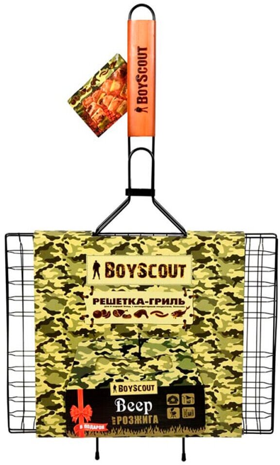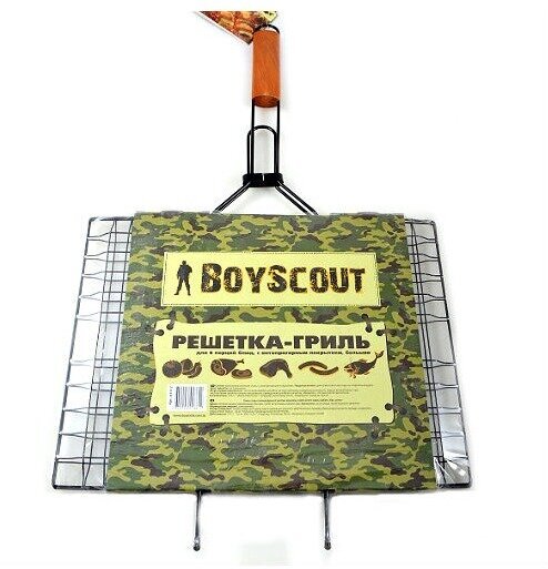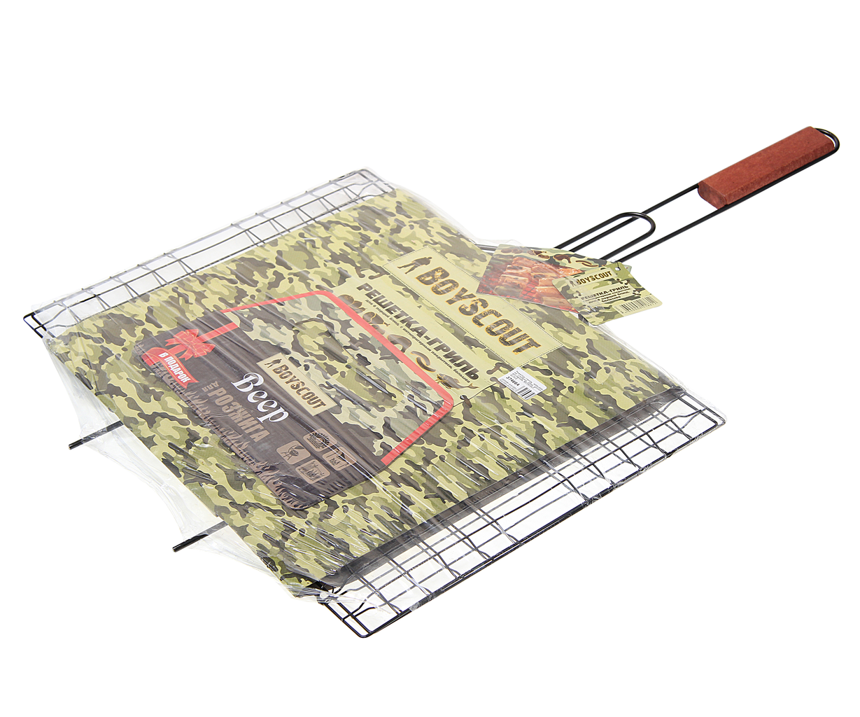 Решетка-гриль BOYSCOUT рассчитана на 6 порций блюд, прекрасно подходит для приготовления рыбы, мяса, овощей и птицы на открытом воздухе. Сделана из высококачественной стали c хромированным покрытием. Можно использовать для мангалов и барбекю. На ручке располагается широкое фиксирующее кольцо, что гарантирует надежную фиксацию. Особая деревянная ручка защитит руки от ожогов, а также добавит удобства для обхвата двумя руками, что позволяет легко переворачивать решетку.