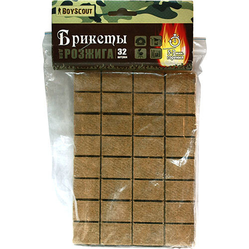 - Брикеты для розжига (BoyScout) обзор 61115 бренд BoyScout производитель ЛинкГрупп ПТК (Россия)
